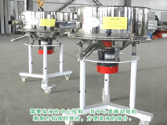 由于漿液具有一定的粘性,流動性非常不好,因此需要漿液在中心投料,且中心是振動電機激振力較強的地方,方便漿液的篩分。