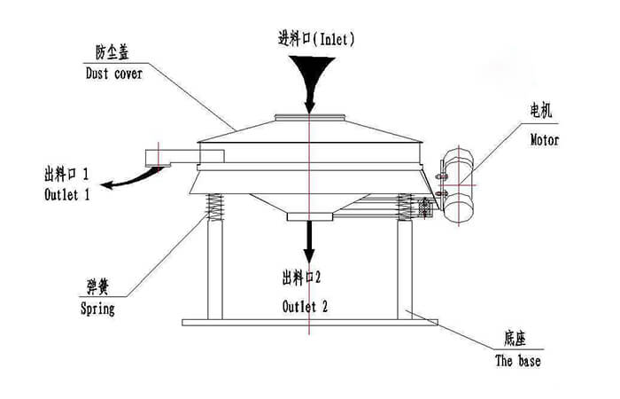 普通旋振篩:裝配一臺立式振動電機(jī),利用立式振動電機(jī)作為激振源,在電機(jī)的帶動下物料在篩框做水平、垂直、傾斜的三維運(yùn)動。通過不同目數(shù)的篩網(wǎng)過網(wǎng)完成篩分目的,具有自動篩分排料的功能。