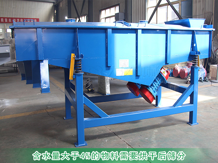 直線振動篩在篩分含水量高或者粘性高的物料時,需要減少物料的含水量后才能篩分使用,因?yàn)楹扛叩奈锪细哂姓吵硇?,在篩分過程中容易吸附在篩網(wǎng)上,造成篩網(wǎng)堵塞,對于含水量大于4%的物料需要烘干后篩分,含水量大于20%時需要采用濕式篩分。
