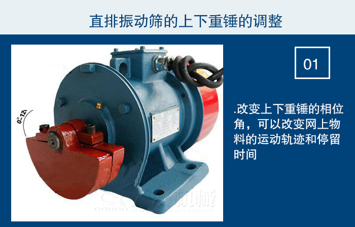 1.改變上下重錘的相位角,可以改變網(wǎng)上物料的運(yùn)動(dòng)軌跡和停留時(shí)間。為是篩機(jī)適應(yīng)各種物料所需求的分離狀態(tài),如物料的分布,處理量、過(guò)網(wǎng)率等各種變化,應(yīng)將它調(diào)整到最佳狀態(tài)。