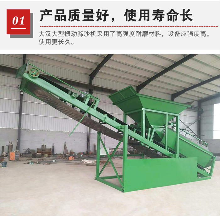 大型振動(dòng)篩沙機(jī)主要用于大型沙石生產(chǎn)線,所以在設(shè)備的耐用性上面會(huì)有要求,大漢大型振動(dòng)篩篩機(jī)為了減低用戶在使用設(shè)備因質(zhì)量等造成停機(jī)等現(xiàn)象,從而影響工作效益,大漢大型振動(dòng)篩沙機(jī)采用了高強(qiáng)度耐磨材料,設(shè)備應(yīng)強(qiáng)度高,使用更長(zhǎng)久。