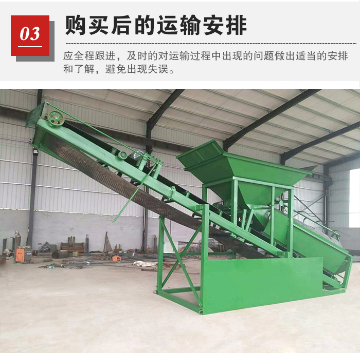 篩沙機(jī)在采購?fù)戤吅?,廠家會(huì)在設(shè)備完成后進(jìn)行運(yùn)輸發(fā)貨,此時(shí),用戶應(yīng)全程跟進(jìn),及時(shí)的對(duì)運(yùn)輸過程中出現(xiàn)的問題做出適當(dāng)?shù)陌才藕土私?,避免廠家出現(xiàn)失誤,出現(xiàn)小配件漏發(fā)等問題。