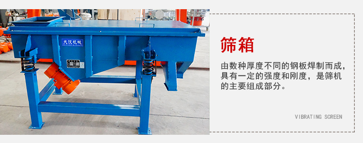 1、篩箱:由數(shù)種厚度不同的鋼板焊制而成,具有一定的強(qiáng)度和剛度,是篩機(jī)的主要組成部分。