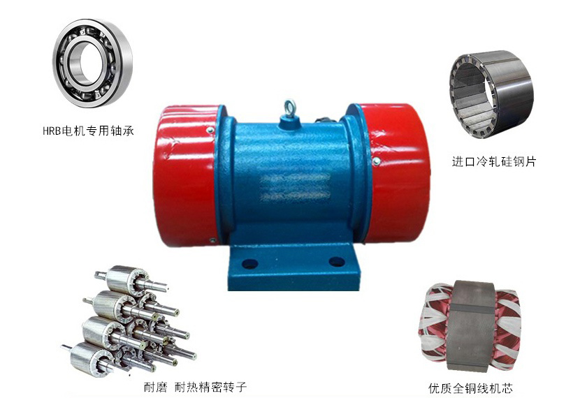 2.振動器:振動器是連接在電機轉(zhuǎn)子上的部件,通過旋轉(zhuǎn)的方式產(chǎn)生離心力,將旋轉(zhuǎn)運動轉(zhuǎn)換為直線振動,從而驅(qū)動振動設(shè)備進行振動工作。