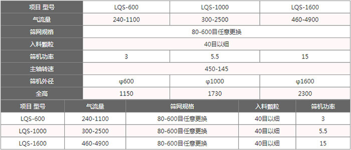 該機(jī)適合80-530目有網(wǎng)各種粉狀物料篩選分級,其篩分效率高、產(chǎn)量大、自動進(jìn)料排料、連續(xù)作業(yè)、無污染,使以往用各種振動篩難以進(jìn)行高細(xì)度精密篩分作業(yè)成為易事。經(jīng)過對120-180目輕鈣、300目重鈣、400目活性鈣、300目山楂粉、320-500目鋅粉、500目氧化鐵黑、氧化鐵紅、120-160目中藥粉、180-270目石英粉等物料的篩分使用,測得每平方米篩網(wǎng)面積每小時(shí)產(chǎn)量均在一噸左右,同時(shí)測得篩分效率在95%以上,空氣含塵量低于10mg/m3。