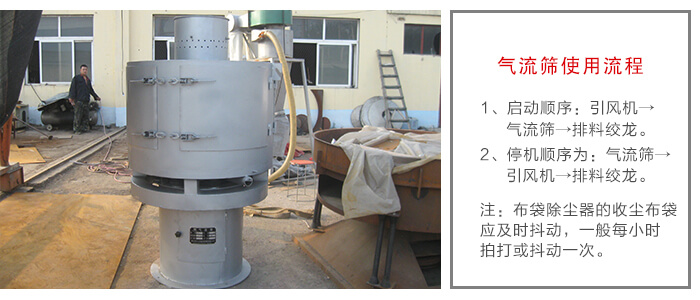 氣流篩組操作啟動順序:引風(fēng)機(jī)→氣流篩→排料絞龍。