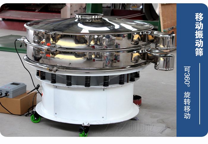 移動(dòng)振動(dòng)篩其實(shí)是振動(dòng)篩底部加裝萬(wàn)向旋轉(zhuǎn)輪,可360°旋轉(zhuǎn)移動(dòng),主要應(yīng)用于篩分場(chǎng)所不固定,便于用戶移動(dòng),一人即可操作。