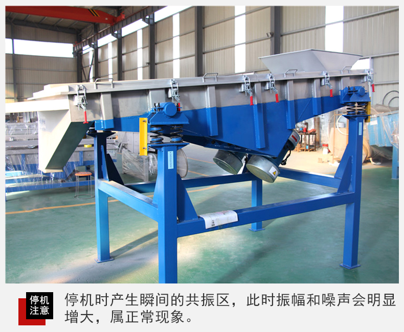 6、設(shè)備在停機(jī)時(shí)產(chǎn)生瞬間的共振區(qū),此時(shí)振幅和噪聲會(huì)明顯增大,屬正?,F(xiàn)象,設(shè)備在開(kāi)停機(jī)前,篩面上不得有存留物料,篩網(wǎng)需經(jīng)常檢查是否張緊、破損,如有破損要即時(shí)更換。