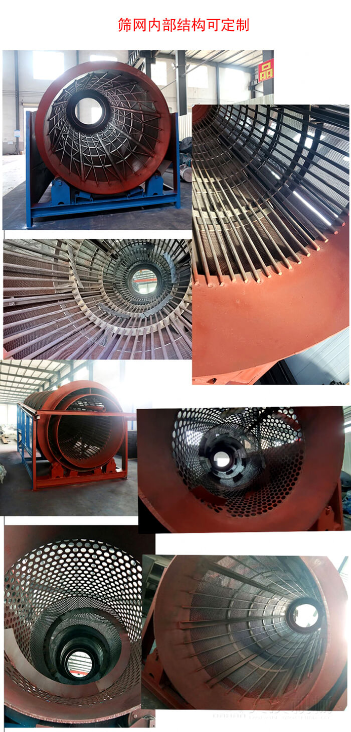 我公司研制的重型滾筒篩進(jìn)料口可根據(jù)現(xiàn)場實(shí)際設(shè)計(jì),無論是皮帶、漏斗或其它進(jìn)料方式,不用采取特殊措施,都可以順暢進(jìn)料。