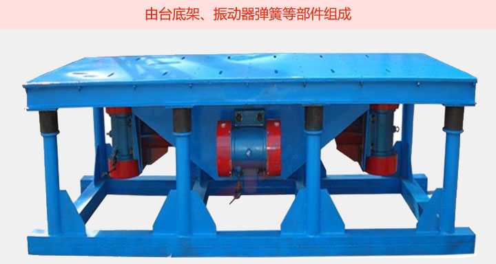 混凝土振動平臺主要由臺底架,振動器彈簧等部件組成,臺面與底架均用鋼板和型鋼焊接而成,振動臺是用電動機加一對相同的偏心論組成。并通過一對吊架聯(lián)軸器安裝在臺面中心位置,起著振實過程中平穩(wěn),垂直方向的作用。