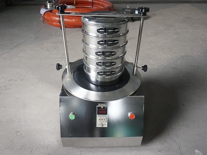 實(shí)驗(yàn)室振動(dòng)篩振動(dòng)原理:以YZU立式振動(dòng)電機(jī)作為整機(jī)振動(dòng)源,通過振動(dòng)電機(jī)帶動(dòng)上部振動(dòng)盤振動(dòng),再通過振動(dòng)盤傳導(dǎo)至安放在振動(dòng)盤上部篩框上,然后由需要檢測(cè)目數(shù)的篩框把小于篩網(wǎng)孔徑的物料顆粒篩分至下層篩框,如此層層篩選,使每層篩框內(nèi)只留相同粒度的物料,達(dá)到不同粒度的分離并確定此物料的粒度組成,使篩框中的物料能非常有效的起到過濾、分級(jí)、篩分目的。