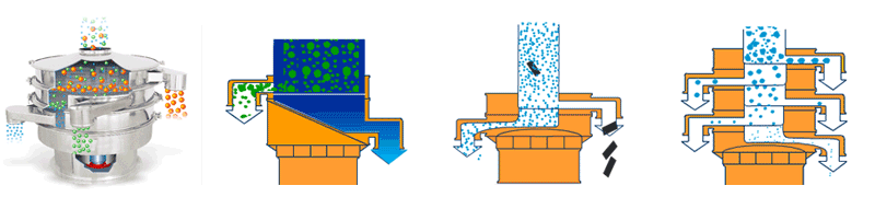 應用 | 要用于物料原料的篩分和成品的最終生產(chǎn)檢驗,可以去除產(chǎn)品中的結(jié)塊和污染物,一次操作最多可提供5級分級。 | 適合高粘性、高靜電細粉,篩分精度可以提高80%以上,產(chǎn)量提高2-5倍。 | 模擬人工篩分的動作,產(chǎn)生了水平和投擲的三維滾動運動,適用于500目以內(nèi)的細粒狀物料,篩分精度提高了90-95%,產(chǎn)量是圓形振動篩的5-10倍。 | 適合一般的粗略篩分或除雜,的進、出料口設計在同一垂直方向上,這樣會加快物料的排料速度,處理量是普通圓形振動篩的2-5倍。 | 經(jīng)常用在液體過濾行業(yè),可去除液體或懸浮物中存在的不需要的顆粒,當然也是可以作為粉末除雜??捎迷谔幚砹枯^小的工廠或小型作坊。 |